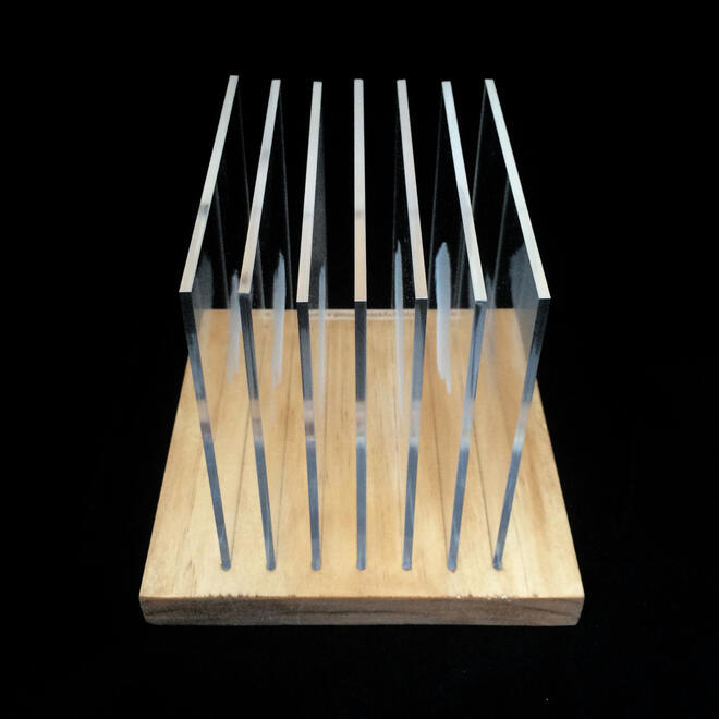 We've created a physical desktop-sized cloud that functions as a file folder / storage unit. When there's nothing in it, there's an optical illusion of a floating cloud. When objects are placed in it, they appear to be floating in that cloud.Each cloud is a unique optical illusion hand-made out of polycarbonate planes, acetone, and wood in our studio in San Francisco. To create branded clouds, we will print your logo on the wood base. For larger volume brand-emblazoned requests, we can laser-etch your logo. We can also make customized clouds out of other materials such as metal and glass upon request.